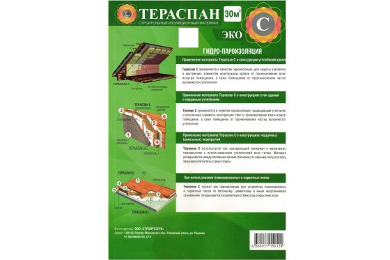 Паро-гидроизоляционный материал ТЕРАСПАН С ЭКО 30 кв. м область применения: